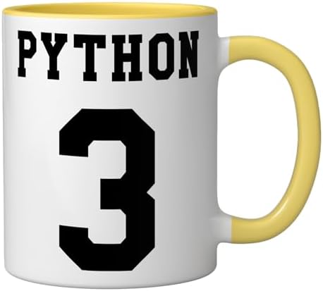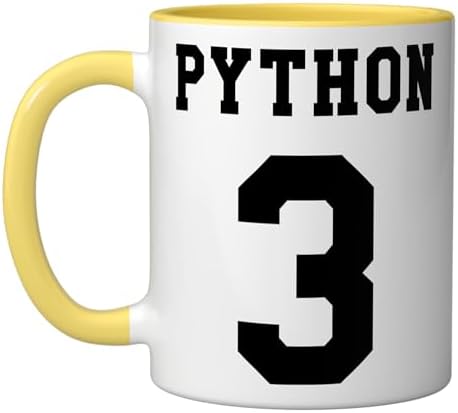 Python 3 College Sports Design for Programmers & Developers Ceramic Mug, Yellow/White