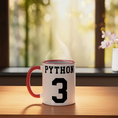 Python 3 College Sports Design for Programmers & Developers Ceramic Mug, Red/White