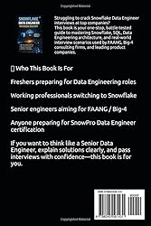 - Struggling to crack Snowflake Data Engineer interviews at top companies? This book is your one-stop, battle-tested guide to mastering Snowflake, SQL, Data Engineering architecture, and real-world interview scenarios used by FAANG, Big-4 consulting firms, and leading product companies.Snowflake Data Engineer Interview Mastery is not a theory book. It is a practical interview playbook built from:Real interview questionsEnterprise production scenariosArchitecture-level discussionsHands-on SQL & CDC pipelinesSnowpark & Python use cases