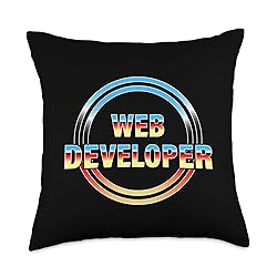 This design proudly declares that you are a Web Developer Fun retro vintage style for men or women 100% spun-polyester fabric Double-sided print Filled with 100% polyester and sewn closed Individually cut and sewn by hand Spot clean/dry clean only