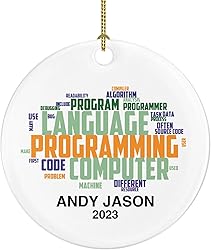 - Personalized computer programmer ornament features a creative code-inspired word art design in a festive tech theme. This custom Christmas ornament is a perfect decoration for any coding enthusiast’s tree. A meaningful keepsake gift for coworkers, employees, or tech lovers from managers, employers, or friends. Ideal for celebrating holiday cheer among IT professionals. Great for Christmas, Secret Santa, tech company parties, or retirement celebrations.