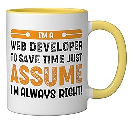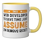 Web Developer Coding Geek Sarcastic Developer Ceramic Mug, Yellow/White