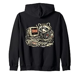 - Funny Trash Panda programmer design showing the reality of endless debugging and long hours spent in front of a computer screen.Dark IT humor artwork inspired Punk and rock vintage style with a classic CRT monitor displaying an ERROR message, referencing common programming and software development struggles.