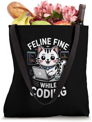 Feline Fine While Coding Programmer Tote Bag