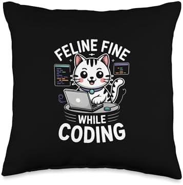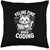 Feline Fine While Coding Programmer Throw Pillow