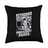 Coding Keyboard Occupied by Cat Throw Pillow