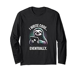 - Ideal for relaxed programmers, software developers, and students who relate to slow but steady progress. With a cute sloth holding a device and the phrase I WRITE CODE.. EVENTUALLY.