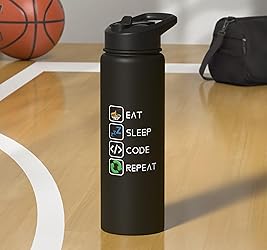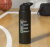 Perfect Gift Idea for dad, father, mom, brother, sister, husband, wife, boyfriend, uncle, son, daughter, aunt, girlfriend, mother, friend. Humor apparel with crazy text that says "Eat Sleep Code Repeat" Eat Sleep Code Repeat Fun Saying Computer Programming, Coder, IT Professional. Dual-wall insulated stainless steel construction keeps beverages hot or cold, dishwasher safe and BPA free Leak-proof flip lid includes BPA free plastic drinking straw