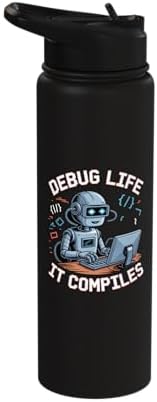Debug Life It Compiles Funny Programmer Coding Robot Stainless Steel Insulated Water Bottle