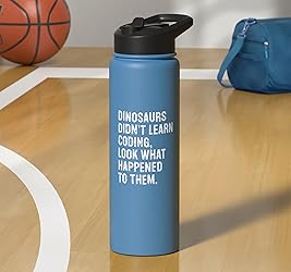 Dinosaurs Didn't Learn Coding Funny Programming Programmer Stainless Steel Insulated Water Bottle