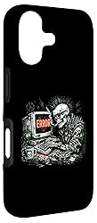 Skeleton programmer design showing the reality of endless debugging and long hours spent in front of a computer screen. Dark IT humor artwork inspired Punk and rock vintage style with a classic CRT monitor displaying an ERROR message, referencing common programming and software development struggles. Two-part protective case made from a premium scratch-resistant polycarbonate shell and shock absorbent TPU liner protects against drops Printed in the USA Easy installation