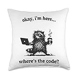 Funny Raccoon Developer Where is The Code Coding Graphic Throw Pillow