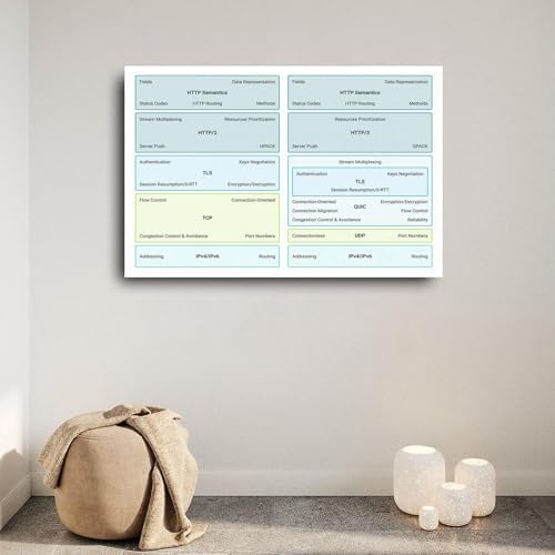 HTTP 2 Vs HTTP 3 Protocol Stack Poster Network Protocol Comparison And Web Performance Reference Canvas Painting for Bedroom Living Room Decor 30x20inch(75x50cm) Unframe-style