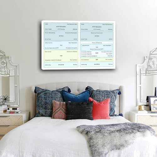 HTTP 2 Vs HTTP 3 Protocol Stack Poster Network Protocol Comparison And Web Performance Reference Canvas Painting for Bedroom Living Room Decor 36x24inch(90x60cm) Frame-style