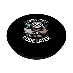 You live on caffeine and code, so this Coffee First Code Later sloth fits your everyday developer grind. Show your love for late night debugging, coding bootcamps, hackathons, sprint planning, standups. You balance chill sloth vibes with intense programming focus, and this Coffee First Code Later coder theme captures that mood. Ideal when you crush deadlines, push commits, pair program, learn new languages. Adhesive backing attaches the PopGrip to your case or device. Will not stick to silicone,leather,waterproof,or highly textured cases. Works best with smooth,hard,plastic cases. Not compatible with wireless charging Printed top is swappable with other compatible PopGrip models. Just press flat,turn 90 degrees until you hear a click and remove to swap.