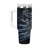 FekiLoot Programmer Programming Code Tumbler with Lid 40 Oz Double Wall Vacuum Cup Insulated Tumbler with Handle Leak Proof Travel Mug Stainless Steel Water Bottle - Fits Car Cup Holder