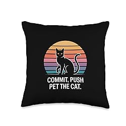 Commit Push Pet The Cat Coding Cat Humor Throw Pillow