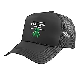 Are you a computer nerd, a software engineer, a tech savvy person, working on tech support or are you the IT geek in your group? USB and floppy disk lovers with a passion for coding, programmers, hackers and developers, this is designed for you. Computer Nerd Proud Programmer Design. Five-panel trucker hat featuring structured foam front, mesh back, and high-profile crown Adjustable fit; one size fits most adults