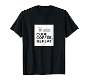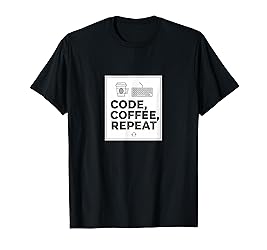 - This “Code, Coffee, Repeat” design captures the daily rhythm of programming life using a simple black-and-white layout with coding and coffee symbolism. A strong choice for anyone who enjoys software development, coding culture, and tech humor.