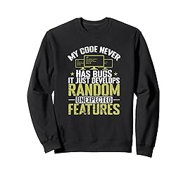 - Imaginative present on the topic programming. Related search words are computer, coding and software. Nice grafic for Computer Fans and Internet Nerds with the title: My Code Never Has Bugs, It Just Develops Random Unexpected Features. The language of computers consists of 1 and 0, not everyone can tell the PC what to do. It is not easy to program the so called software, for that you have to be almost a nerd. Games or software have programmed databases.