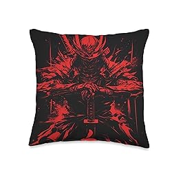 Samurai warrior illustrated with dark armor and red highlights, inspired by classical Japanese warrior symbolism Atmospheric composition expressing discipline, honor, and quiet strength through contrast, posture, and color 100% spun-polyester fabric Double-sided print Filled with 100% polyester and sewn closed Individually cut and sewn by hand Spot clean/dry clean only