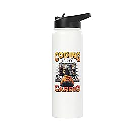 Coding themed motif for computer scientists, software engineers and debugging nerds who love coding. Coding Is My Cardio. Dual-wall insulated stainless steel construction keeps beverages hot or cold, dishwasher safe and BPA free Leak-proof flip lid includes BPA free plastic drinking straw