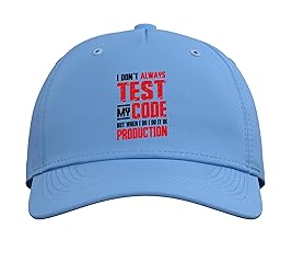 Funny saying for programmers who love to code. Coding nerd design for software developers and debugging specialists. I Don´t Always Test My Code But When I Do I Do It In Production. Classic five-panel structured baseball hat with high-profile crown Adjustable fit; one size fits most adults