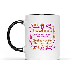 Junior Software Developer humor: Bring a smile to any junior software developer's face with this fun coffee mug; desk companion Great gift idea: Ideal for holidays; those who appreciate looking for something memorable will love this Durable ceramic: Built to last through daily use; maintains vibrant colors after washing Conversation starter: Unique junior software developer-related design gets attention; great for office breakrooms Daily enjoyment: A gift that gets used every single day; makes mornings better