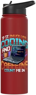 - This computer science themed design features a pixel art laptop and coffee mug with the quote 'IF IT INVOLVES CODING AND CAFFEINE COUNT ME IN'. Perfect for every software engineer, web developer, and tech geek.
