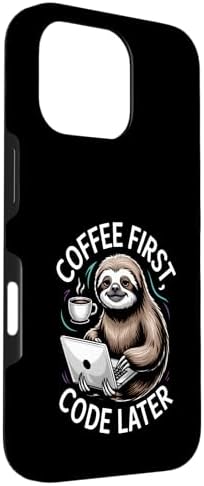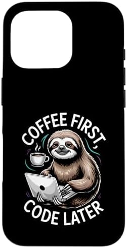 Coffee First Code Later Sloth Programming Case for iPhone 16 Pro
