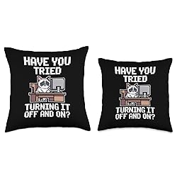- Funny tech support cat design featuring grumpy office cat at computer with classic “Have You Tried Turning It Off And On” quote; perfect IT support Tee, help desk humor tee, programmer joke Tee, sysadmin gift, coder meme apparel, computer technician Great gift idea for IT guy, software developer, network engineer, computer science student, gamer, geek, nerd, coworker or boss; ideal for office wear, tech conferences, birthdays, Christmas, Father’s Day, and work-from-home outfits.