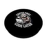 Coffee First Code Later Sloth Programming PopSockets Adhesive PopGrip