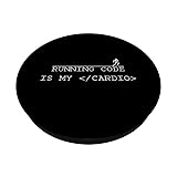 Great design on the subject of programming. Suitably as present for B-Day or X-Mas. Perfect as a pyjama top. Nice grafic for Computer Fans and Internet Nerds with the title: Running Code is Programming My Cardio. The language of computers consists of 1 and 0, not everyone can tell the PC what to do. It is not easy to program the so called software, for that you have to be almost a nerd. Games or software have programmed databases. Adhesive backing attaches the PopGrip to your case or device. Will not stick to silicone,leather,waterproof,or highly textured cases. Works best with smooth,hard,plastic cases. Not compatible with wireless charging Printed top is swappable with other compatible PopGrip models. Just press flat,turn 90 degrees until you hear a click and remove to swap.