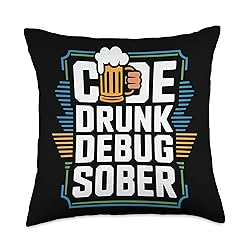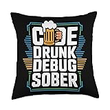 Programmer Beer Lover Alcohol Drinker Computer Programming. This Code Drunk Debug Sober is for a beer drinker who likes to debug and write codes. A funny programming clothes for a beer lover into computer programming. Searching for a cute programmer design for a beer drinker who is a computer programmer? Are you a beer lover expert in software development and programming? Then this is for you. 100% spun-polyester fabric Double-sided print Filled with 100% polyester and sewn closed Individually cut and sewn by hand Spot clean/dry clean only