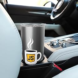Minimalist JavaScript-themed design with a steaming coffee mug for developers who run code and caffeine. Perfect for coders, engineers, and programming students. Dual wall insulated: keeps beverages hot or cold Stainless Steel, BPA Free Leak proof lid with clear slider