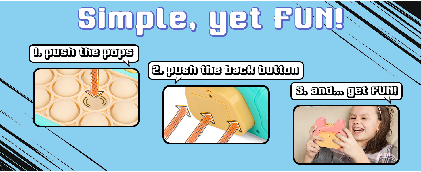 - Multi-Mode Interactive Game: Our handheld game console, the Speed Push Pop, offers four fun game modes - stage mode, memory mode, scoring mode, and multiplayer mode. Each mode provides a unique way to play and enjoy the game, and the console's unique shape design makes it an excellent puzzle game and decompression tool for both children and adults.