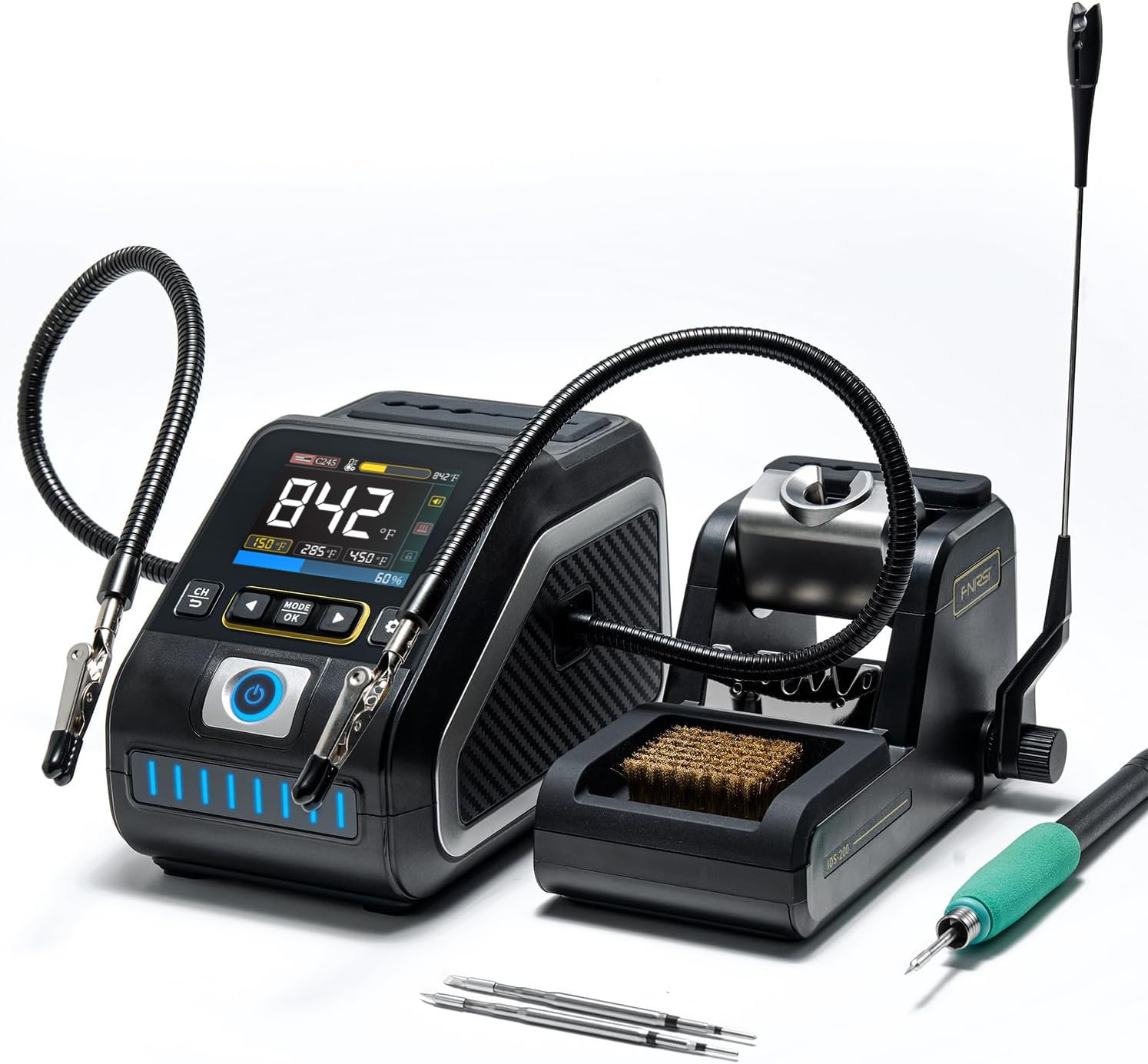 FNIRSI 2C23T Handheld Digital Oscilloscope Multimeter + Function Signal Generator Latest 3IN1 Dual Channel Oscilloscope Signal Generator 10MHZ*2 50MS/s Product sellpoints The Oscilloscope adopts FPGA+MCU+ADC hardware architecture, with a sampling rate of 50MS/s, 10Mhz analog bandwidth, built-in high-voltage protection module, maximum support measurement of peak voltage of plusmn; 400V The multimeter has a 4-digit 10000 point true effective value and supports AC/DC voltage and current measurement, as well as capacitance, resistance, diode, on/off and other measurement functions.. Equipped with a built-in DDS function signal generator, it can output 7 types of function signals, with a maximum output of 2MHz for all signals and a step of 1Hz; The output frequency, amplitude, and duty cycle are adjustable. Using a 2.8 inch 320 * 240 resolution high-definition LCD display screen with a built-in 3000mAh rechargeable lithium battery, the standby time can reach up to 6 H. characteristic: FNIRSI-2C23T is a fully functional, highly practical, three in one dual channel digital oscilloscope designed for the maintenance industry and development industry launched by FNIRSI. This device is equipped with three main functions of oscilloscope, multimeter, and signal generator. Support for saving and viewing waveform screenshots for analysis .The multimeter has a 4-digit 10000 point true effective value and supports AC/DC voltage and current measurement, as well as capacitance, resistance, diode, on/off and other measurement functions. Whether used by professionals, factories, schools, enthusiasts, or families, it is an ideal multi-functional instrument. Oscilloscope Type: Standard, high (optional) Channel:Dual channel Sample rate:50M Analog bandwidth:10M(dual channel independent 10M) Storage depth:32kb Impedance:1M Omega; Time Base Range:50ns-10s Vertical sensitivity:20mV/div-10V/div(X1) Maximum measured voltage: plusmn;400V Trigger mode:AUTO/Normal/Single Trigger type:Rising edge, Falling edge Display mode:YT/Scroll Coupling method:AC/DC Save waveform screenshot:Yes Export waveform images:Yes Multimeter DC Voltage:9.999V~999.9V AC voltage:9.999V~750.0V DC current:9999uA~9.999A AC current:9999uA~9.999A Resistance:999.9 Omega;~99.99M Omega; Capacitance:9.999nF 99.99mF Temperature:(-55~1300℃)/(-67~2372℉) Diode:Yes Continuity test:Yes Live line detection:Yes Function Signal Generator Channel:Single channel Frequency:1Hz-2MHz Amplitude:0.1-3.3 Packing list: (standard) 1 x 2C23T 1 x P6100 Probe 1 x Crocodile clip probe 1 x Multimeter Probe 1 x Charging cable 1 x User Manual 1 x Packaging box Packing list: (high configuration) 1 x 2C23T 2 x P6100 Probe 1 x 1 x Crocodile clip probe 1 x Multimeter Probe 1 x Charging cable 1 x User Manual 1 x Packaging box