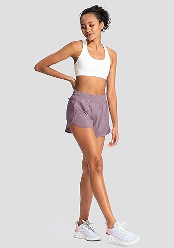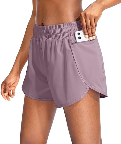 Soothfeel Womens Running Shorts with Zipper Pockets High Waisted Athletic Gym Workout Shorts for Women with Liner
