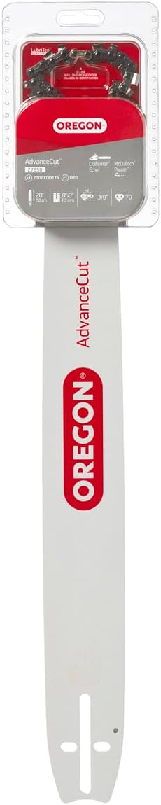 Oregon Chainsaw Guide Bar & Chain Combo, AdvanceCut Replacement for Saw Chains, with Low Kickback Chain, Bar Length 20" (50cm), 3/8" Pitch, 0.050" Gauge, 70 Drive Links (27850)