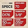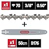 Upgrade your chainsaw with Oregon's premium bar & chain combo. For saws up to 60 cc with a 20" guide bar, 70 drive link, 3/8" pitch and .050" gauge chain, and D176 motor mount