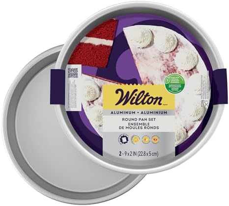 Wilton Aluminum 2-Piece Round Cake Pan Set, Durable Anodized Bakeware for Tiered & Layered Cakes, Even Heating, Rust-Resistant, Professional Cake Baking Pans, 9 x 2 in, Packaging May Vary