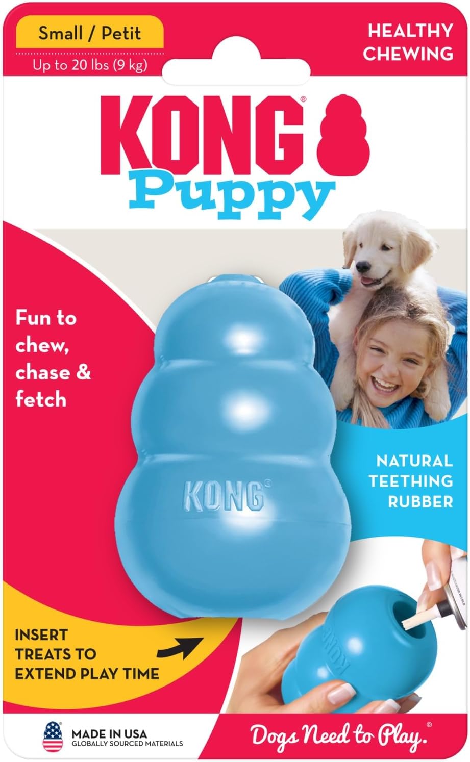 KONG Puppy - Juguete de goma natural para morder para perros - Juguete de goma para perros con relleno - Juguete para masticar y lanzar para cachorros - para cachorros pequeños - Azul
