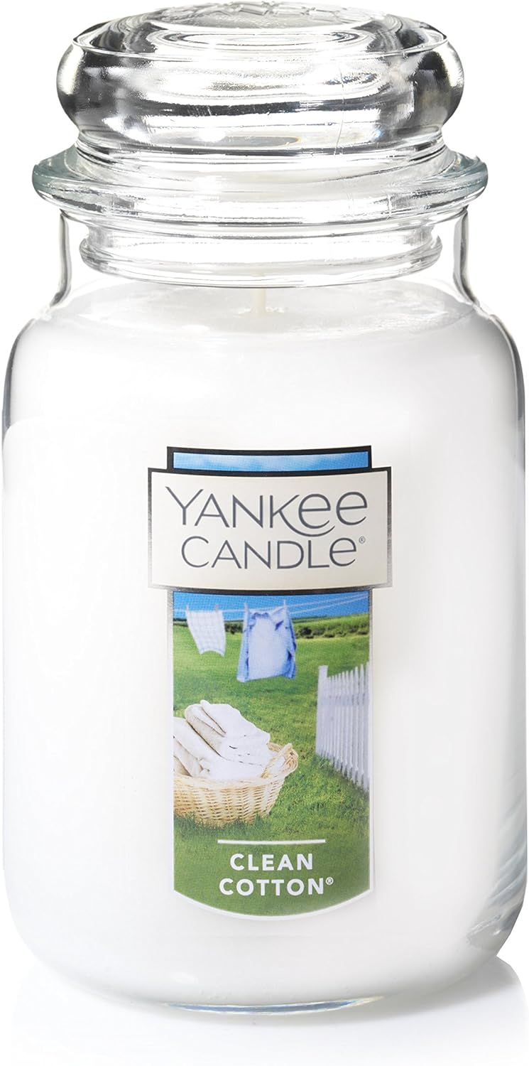 Yankee Candle Clean Cotton Scented, Large 22oz Jar Candle with Premium Paraffin-Grade Wax, Long Burn Time, Ideal for Gifts and Home Decor