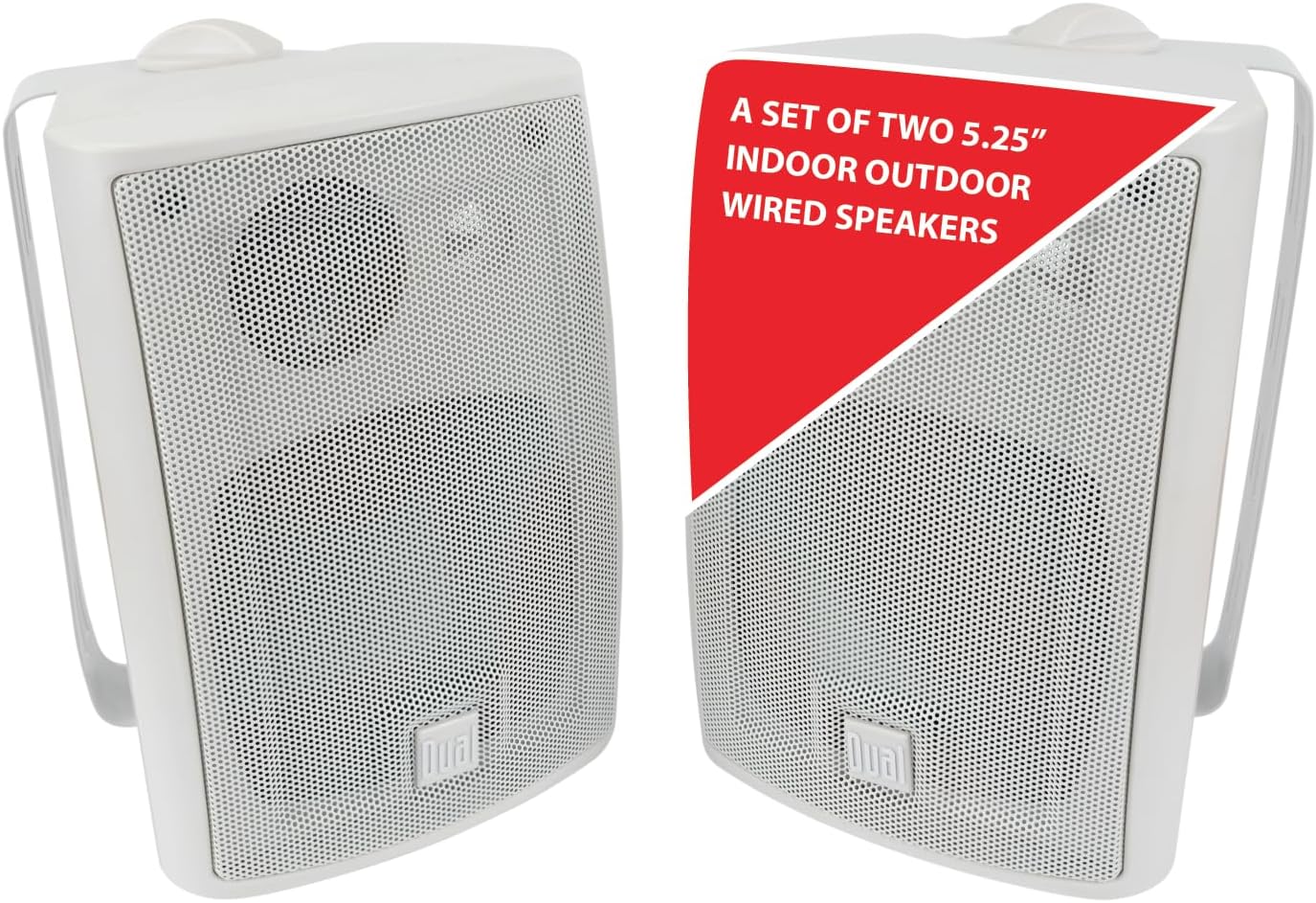 Dual Electronics LU53PW 5.25" 3-Way High Performance Outdoor Indoor Wired Speakers | Effortless Set Up | Home, Pool, Patio, Garage Use | Weather Resistant | Expansive Stereo Sound Coverage | White