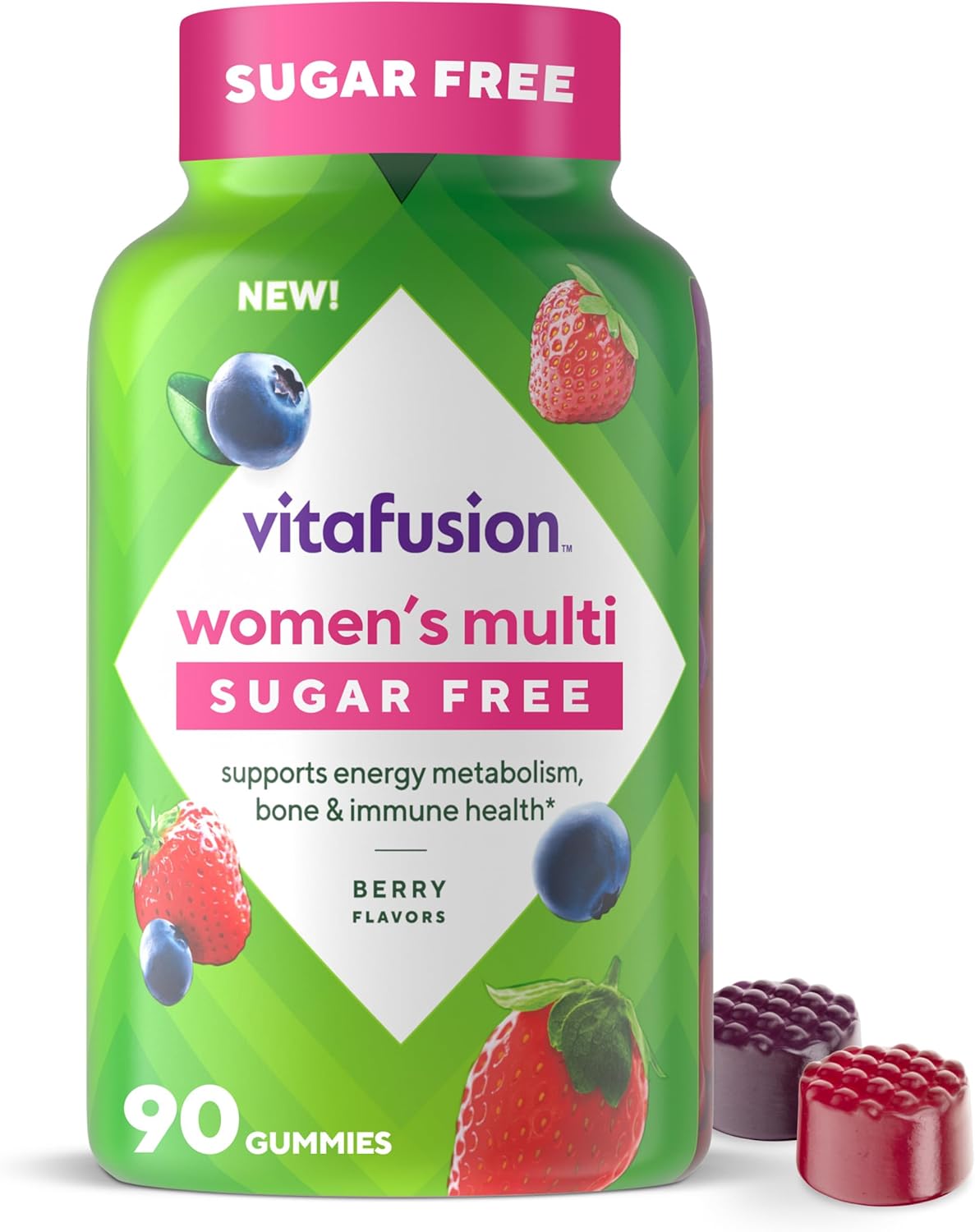 Suplemento Multivitamínico Diario Sin Azúcar Vitafusion para Mujeres, Vitamina Gomosa para Adultos Compatible con Dieta Keto, para Energía, Huesos y Sistema Inmunológico*, 90 Unidades