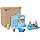 COLORFUL GROCERY BACKDROP features 4 food accessories that all fit inside the trolley, plus a built-in cooler whose door opens and closes. Includes Peppa and Mummy Pig figures, too