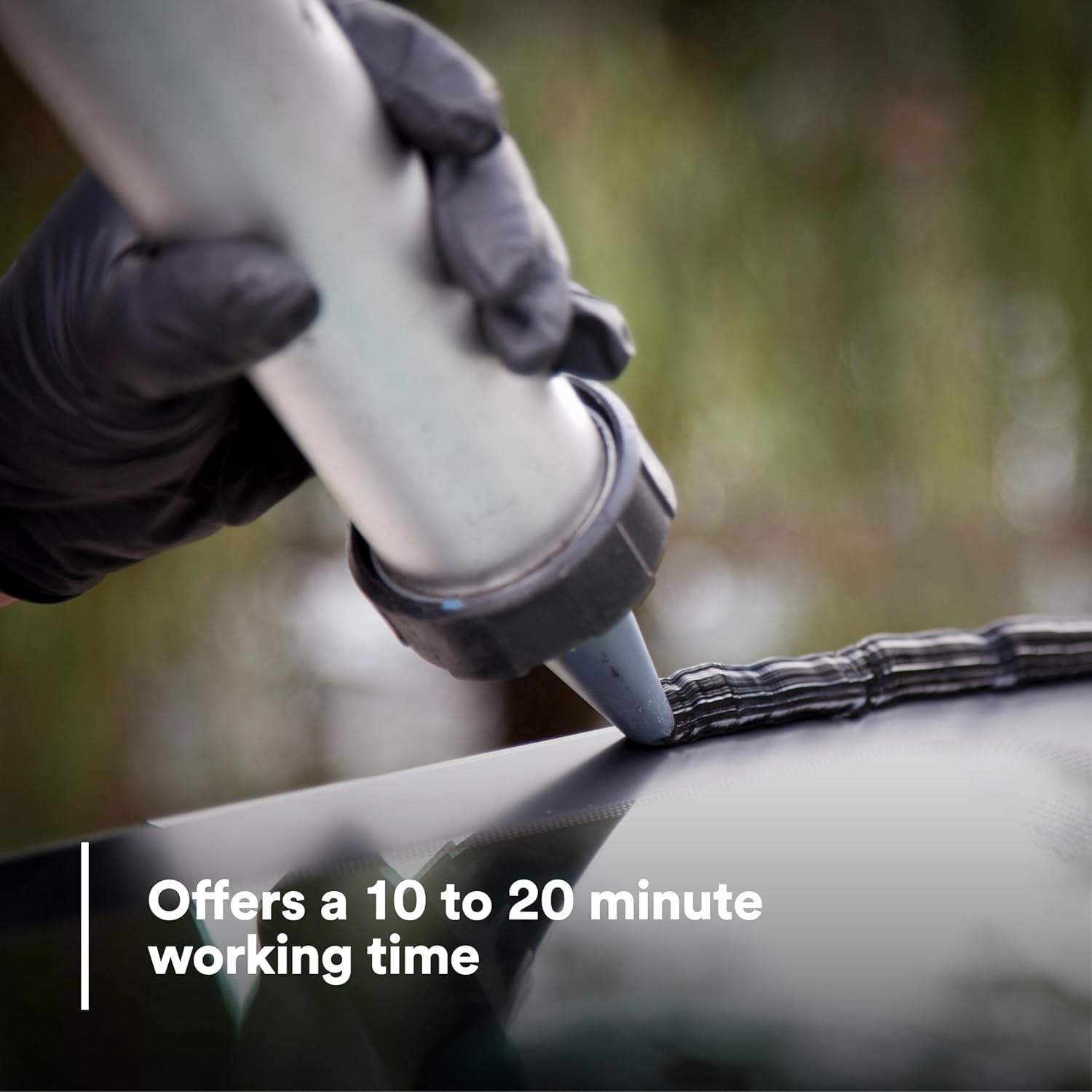 SUPER FAST 1-HOUR CURE: Advanced moisture-curing formula sets quickly with a 10-15 minute work time and achieves safe drive-away strength in as little as one hour (at 73°F). Ideal for professionals to minimize vehicle downtime.