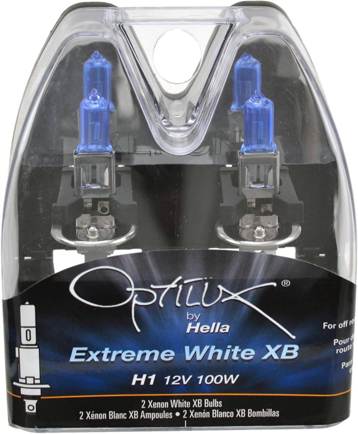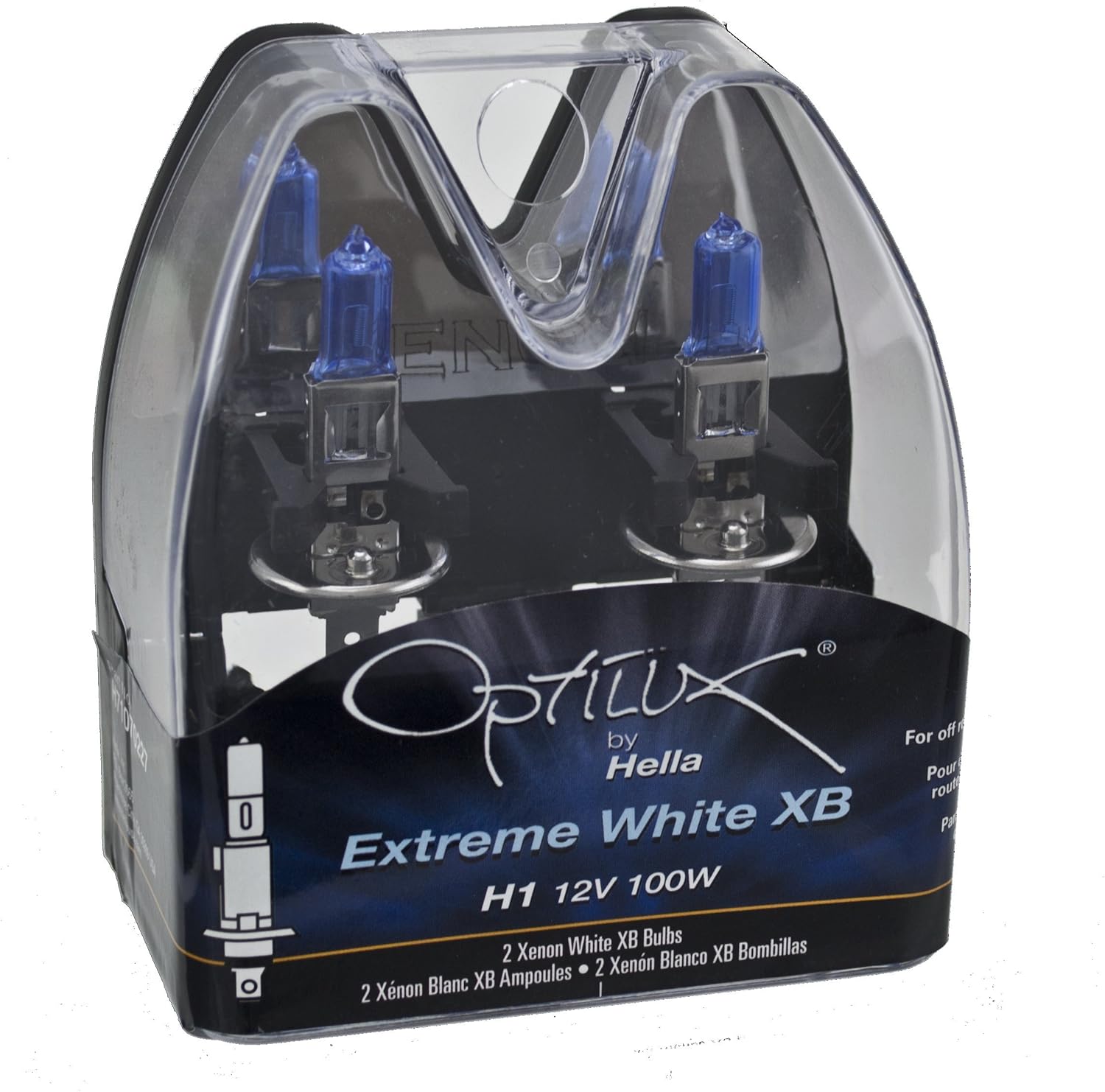 Hella H71070227 Lámparas Halógenas Xenon Blanco Optilux XB Serie H1, 12V 100W, Paquete de 2