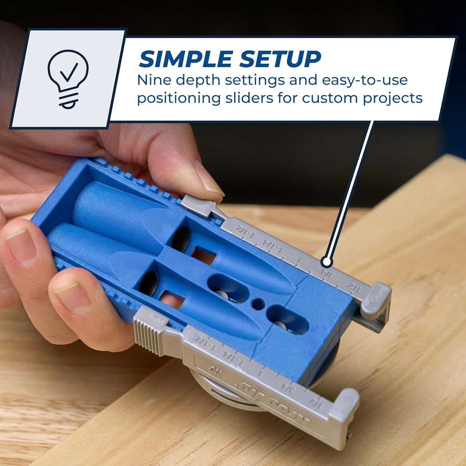 Kreg R3 Jr. Pocket-Hole Jig System - Sistema de guía de agujeros de bolsillo Kreg R3 Jr. portátil - Guía de agujeros de bolsillo Kreg - Fácil de sujetar y ajustar - Incluye deslizadores de posicionamiento - Para materiales de 1/2" a 1 1/2" de grosor
