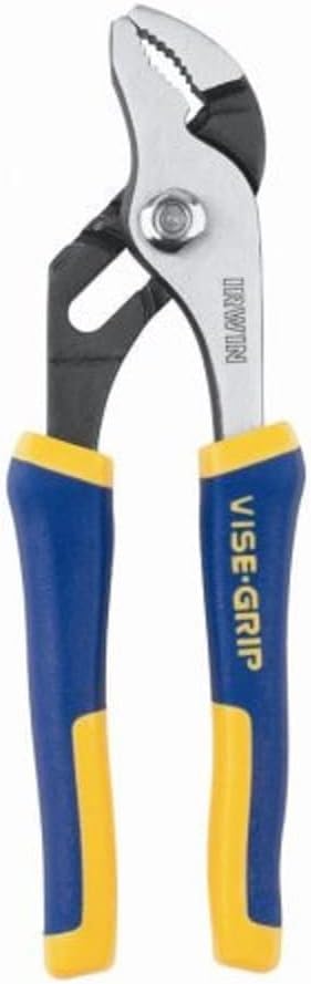 Constructed from durable nickel chromium steel; induction-hardened cutting edge stays sharper, longer. Machined jaws for maximum gripping strength. Anti-pinch, non-slip ProTouch Grips provide comfort, control, and less hand fatigue. Right angle teeth grip in all directions - maximum bite - No slip jaw action. Rust-resistant finish. Curved Jaw pliers are versatile to grip a variety of work surfaces. IRWIN Tools VISE-GRIP Groove Joint Pliers, Curved Jaw, 6-Inch (2078506)